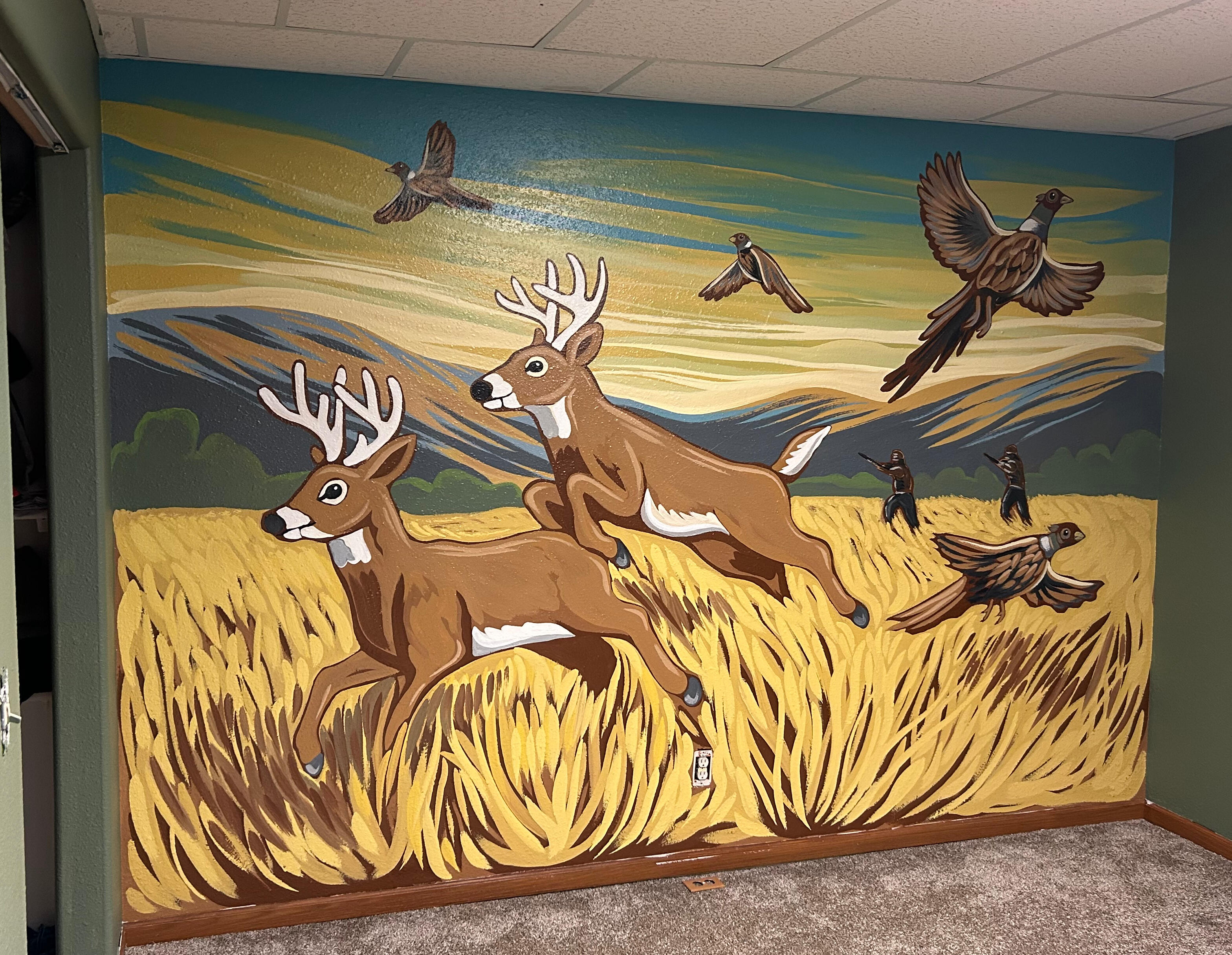Murals can completely transform a space—bringing character, storytelling, and visual impact to walls in homes, businesses, and public areas. I’ve had the opportunity to create work across Nebraska, from small interior pieces to large outdoor installations. If you’re considering a mural, I’d be happy to discuss!